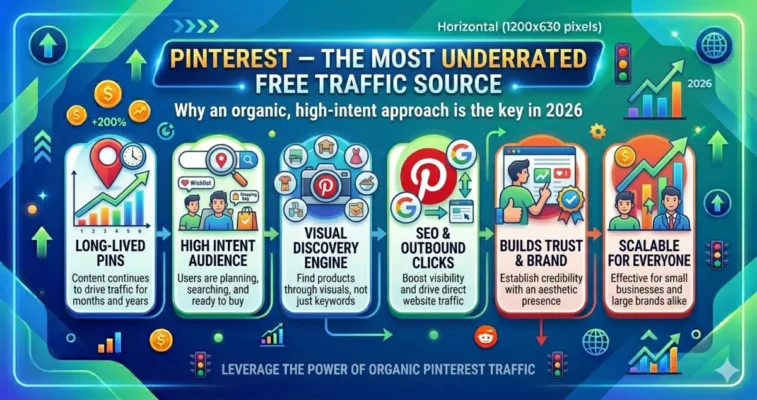 What is the best free traffic source for affiliate marketing in 2026? SEO-driven blog content is the highest-converting free traffic source for affiliate marketing in 2026 because it targets buyer-intent search queries and generates compounding organic traffic without ongoing effort. For faster results while SEO builds, combine it with Pinterest (for visual niches) or Quora (for question-based niches).
